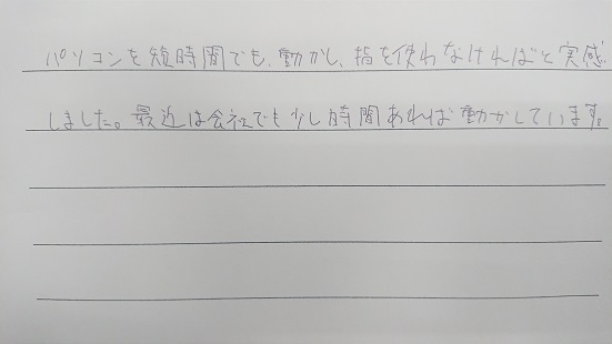 「パソコンを短時間でも、動かし、指を使わないければと実感しました。最近は会社でも少し時間があれば動かしています。」